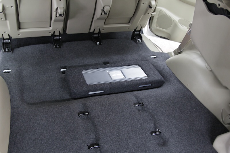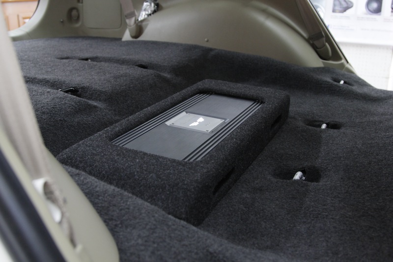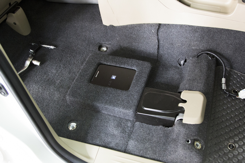 AMPLIFIER HARMOTECH M4 ทำการซ่อนไว้ใต้เบาะแถวที่สอง พร้อมทำไม้ปิดสวยงามครับ