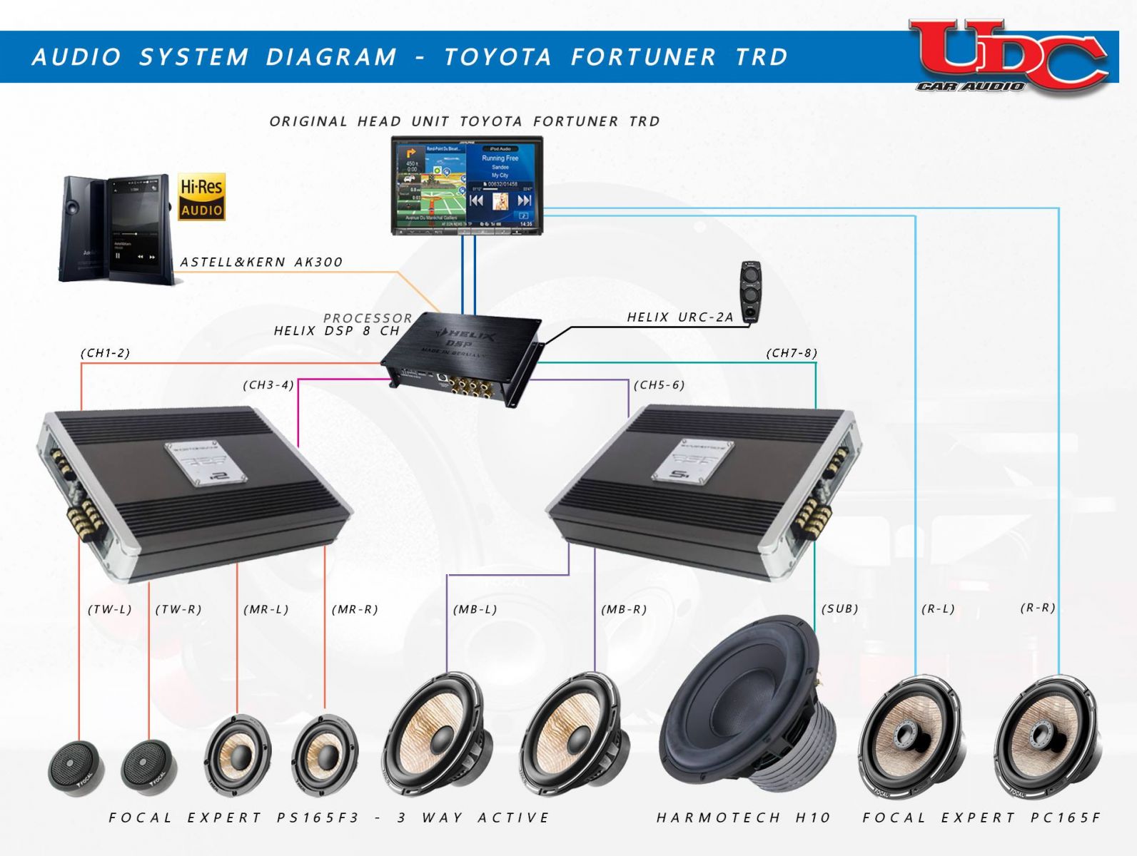 TOYOTA FORTUNER TRD SPORTIVO เข้ามาใช้บริการที่ UDC CAR AUDIO เพื่ออัพเกรดชุดเครื่องเสียงเป็นระบบ QUAD-AMP + REAR ที่เลือกใช้ชุดเครื่องเสียงจาก #FOCAL, #HARMOTECH #HELIX โดยชุดสายทั้งระบบยังเลือกใช้สายจาก #TCHERNOV CABLE สายออดิโอที่ให้เสียงเป็นธรรมชาติมากที่สุด