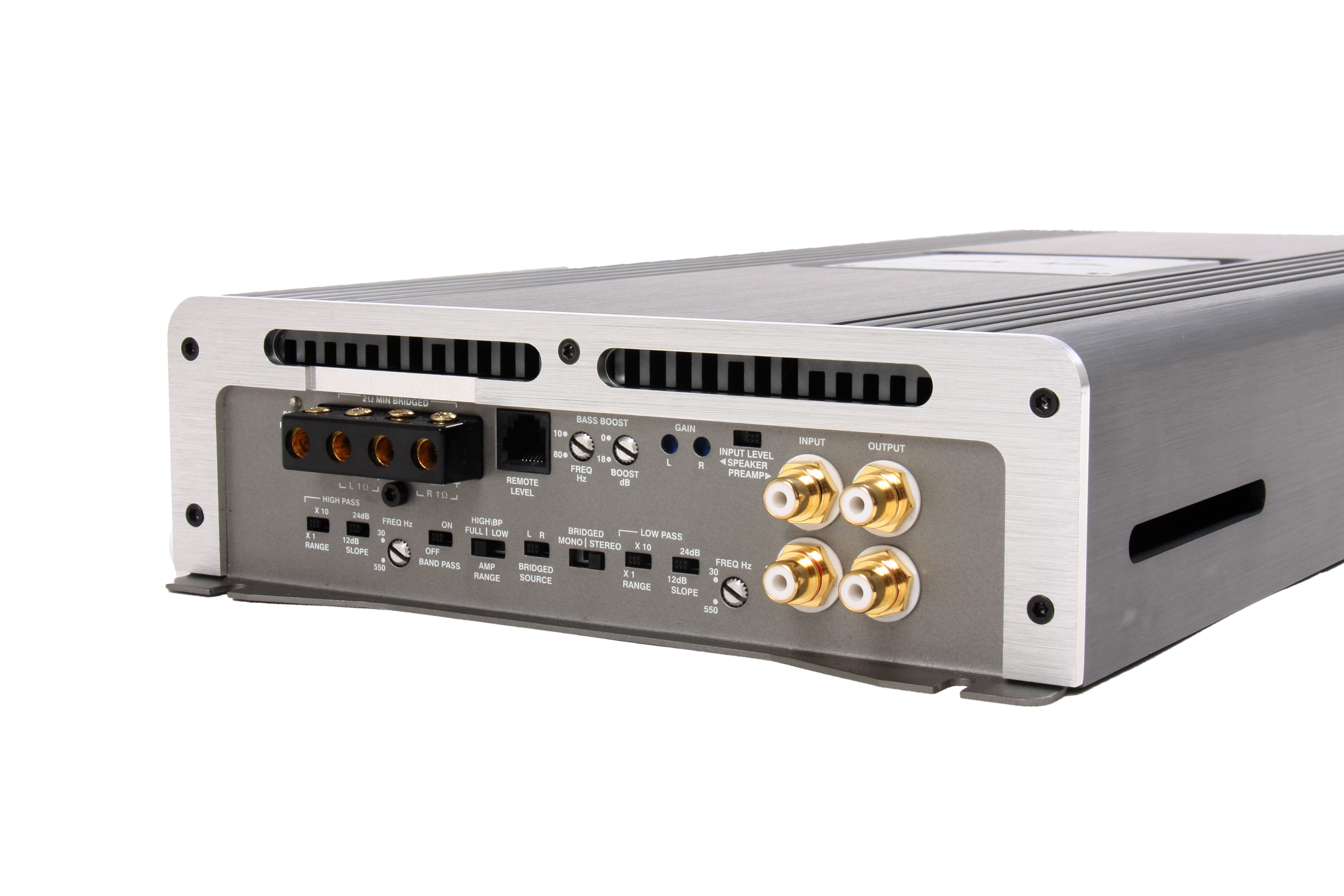 - 12dB or 24dB Slopes on both highpass and lowpass. Ferquency range for 30Hz - 5500Hz on all crossovers. All Channels are bandpassable. Bass Boost is adjustable for frequency and level.