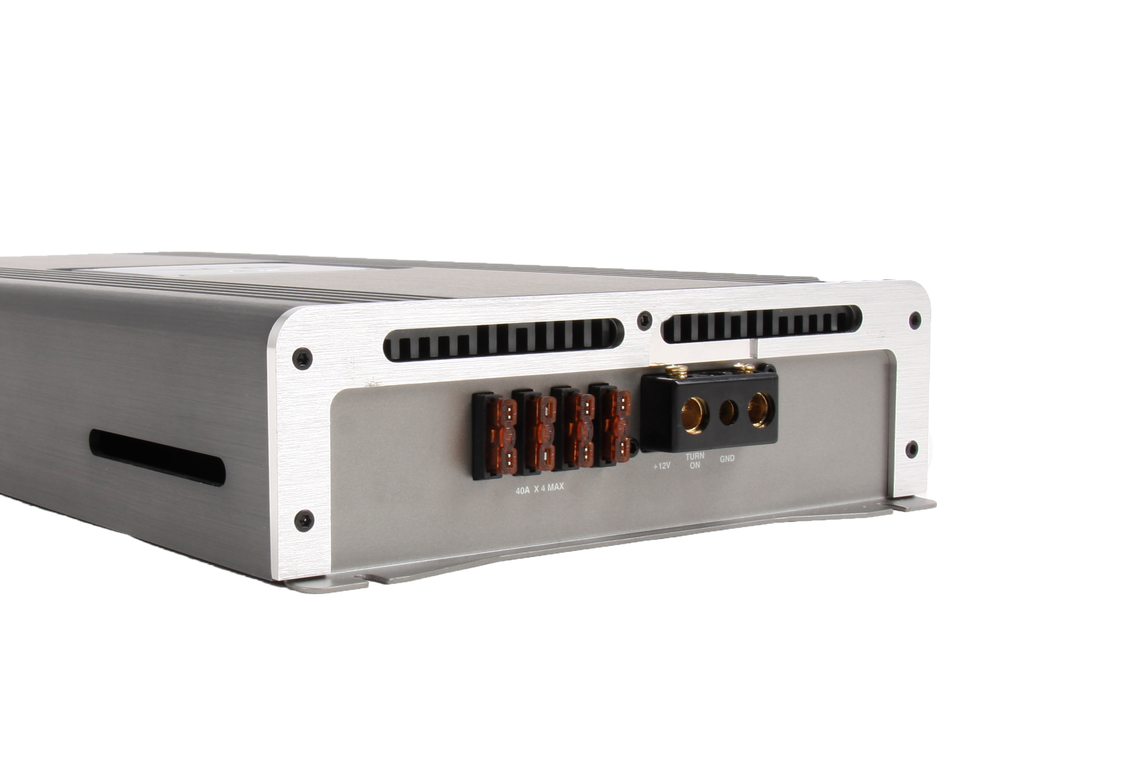 HARMOTECH M4 เพาเวอร์แอมป์คลาส เอบี 4 Channel ตัวเครื่องหลักใช้อลูมิเนียม มีไททาเนียมและมีช่องระบายความร้อนที่ด้านข้างทั้ง 4 เมื่อพัดลมในตัวเครื่องทำงาน จะมีลมร้อนออกมาจากช่องเเหล่านี้ ปุ่มปรับค่า HPF และ LPF มีมาบอกมาให้ไว้อย่างละเอียด ขั้วสายไฟและสายลำโพงเคลืบด้วยทอง ขั้ว RCA ก็เคลือบทองคุณภาพดีด้วยเช่นกัน