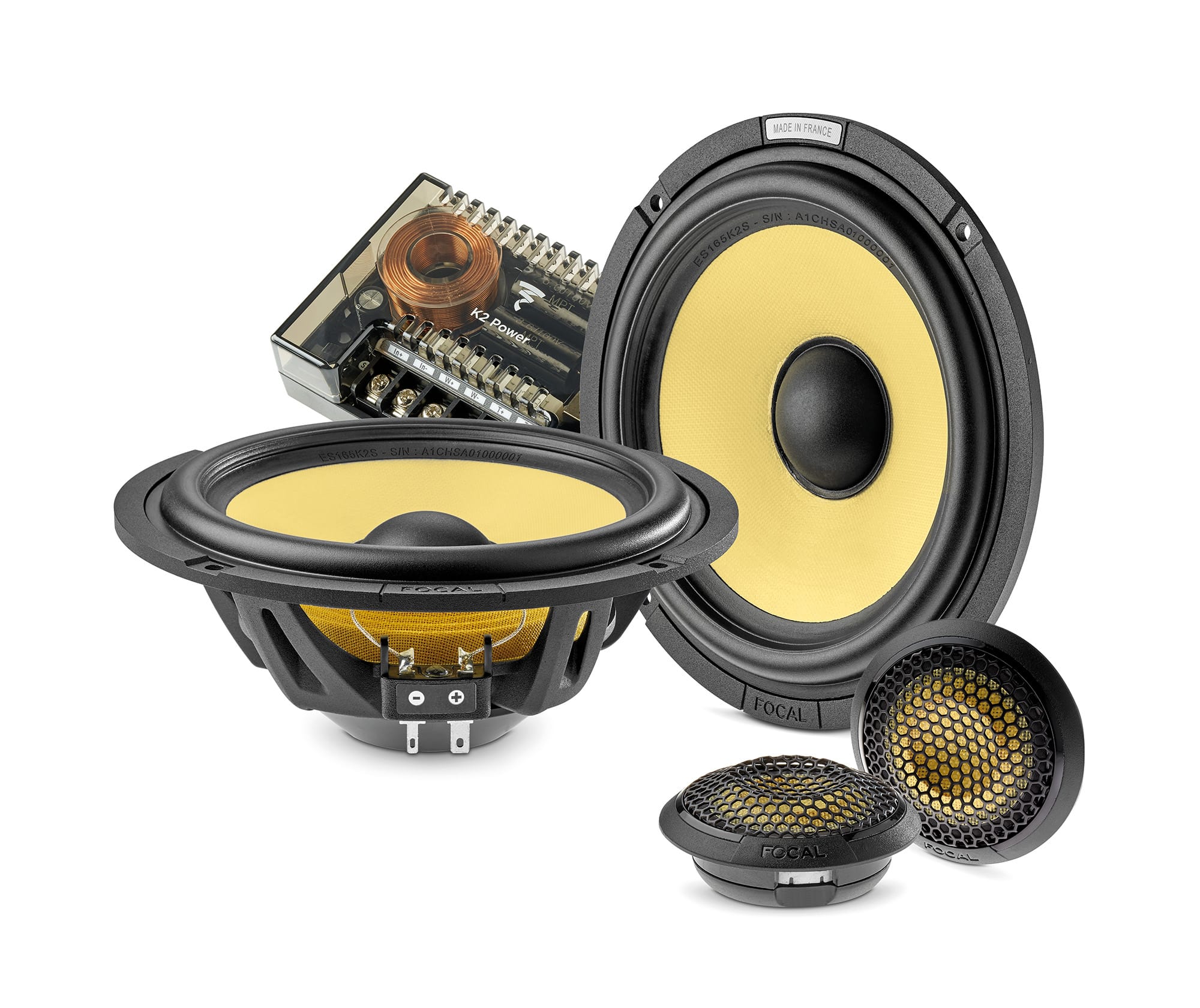 The fourth generation of K2 Power kits, with their emblematic aramid fibre cone, remain true to the precious and distinctive K2 DNA. The speaker drivers combine performance, power and style, whilst including patented innovations to deliver the very best. Designed, developed and manufactured in our workshops in France, the ES 165 K2S 2-way component kit also has a shallow profile making it super compact, without loss of energy.